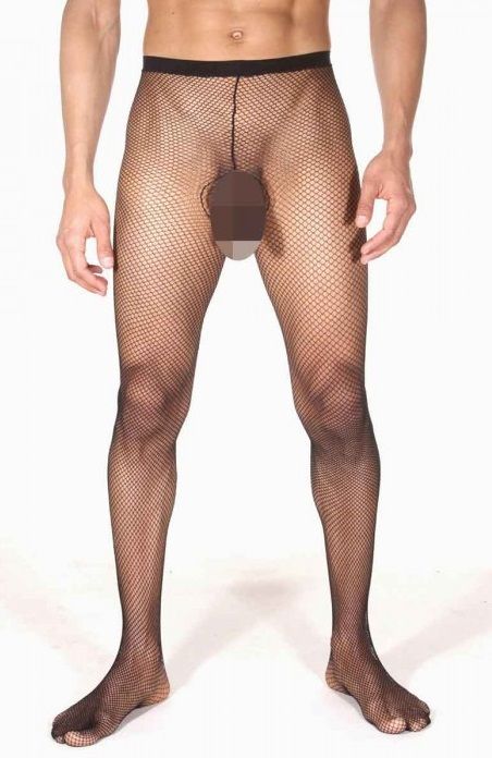 Мужские колготы в среднего размера сеточку. На колготах есть спереди вырезы на интимной зоне. Ткань, из которой изготовлены колготы, отлично тянется и не будет доставлять никакого дискомфорта.