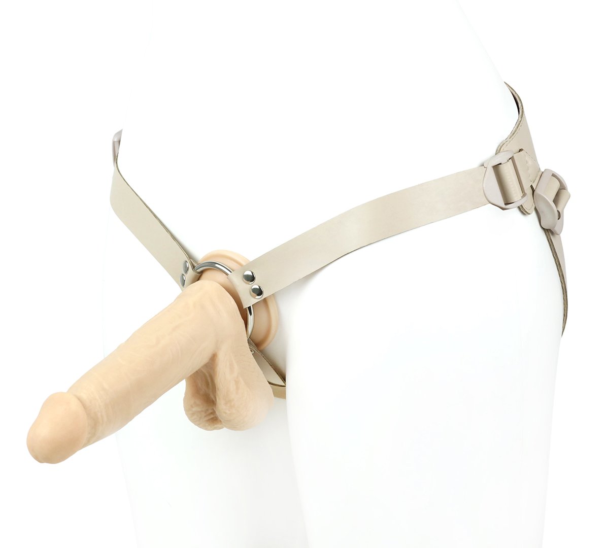 Модель подходит как мужчинам, так и женщинам. Регулируется по форме тела всего один раз. Дальше просто расстегивается с помощью пряжек-фастексов и надевается в следующий раз, как готовое лекало. Металлическое кольцо в конструкции харнесса позволяет использовать любые фаллоимитаторы с присоской. В данной комплектации пояс и насадка прилагаются в телесной цветовой гамме. Такой комплект предлагается для пар, которым важна естественность и максимальная схожесть с обычным интимным контактом. При этом точность, плотность креплений и регулировки позволяют минимизировать впечатление «искусственности» семейных отношений. Размер пояса - 40-64.