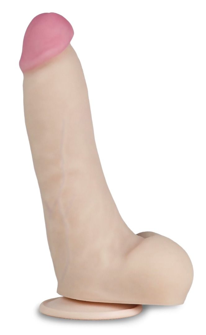 Реалистик с вибрацией на присоске. Встроенный литий-ионный аккумулятор, заряжаемый практически от любого USB разъема. 12-скоростной механизм управления вибрацией. Изделие обладает гибкостью и упругостью, приближено по тактильным ощущениям к биологическому прототипу. Вибрационный механизм находится внутри упругого корпуса, который в свою очередь покрыт сверхмягкой оболочкой из материала неоскин. Индикатор зарядки просвечивает сквозь материал и находится рядом с кнопкой включения-выключения. Надавливанием и удержанием этой кнопки в течение 3 секунд механизм вибрации включается и выключается. Кратковременное нажатие кнопки меняет режим работы. Шнур имеет штырек, который вставляется в основании изделия (в области мошонки). Кабель с коннекторами входит в комплект изделия. Время зарядки составляет 30-60 минут, при этом индикатор гаснет. Рабочая длина - 18 см. Диаметр головки - 3 см.